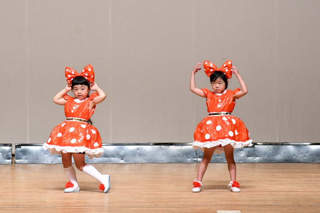 発表会最後の演目は5歳児さんのダンスです。女の子4人がミニーちゃんになりきって踊りました。練習の時から「お気に入り♪曲かけて~❣」と張り切っていましたよ🐭🏰❤縦や横に変わるフォーメーションやカウントを数える振付など、少し難しいのかな?と思う箇所もすぐに覚え、自信たっぷりに本番も踊りきりました✨